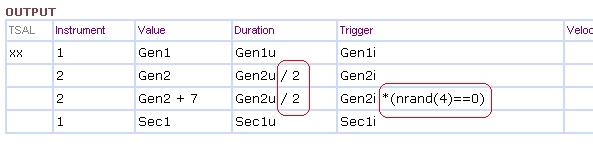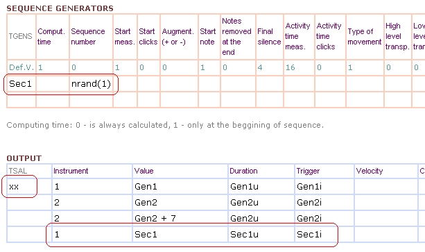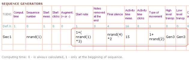 - As you can see, now the melody contains the melodic fragments of our sequences, in a random succession. They are separated by a quarter silence. This "Final silence" is one of the configuration boxes of the Sequence Generators. It is expressed in sixteenths, and its default value is 4. It may be modified from 0 (all sequences would appear one after the other without separation) to a high value. |