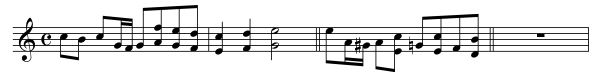 - As shown in the example, which contains the two sequences we will use in this tutorial, these have to be written in the first measures of the file and must always end with a simple double bar. The bars following the sequences will not be taken into account by DM-D. For users of the Finale program, the DM-D template files include one, "insec.mus", to be used directly in writing the sequences. - Once they have been entered in the score editor, they must be exported to XML format so that DM-D can read the sequences. In Finale2006 and 2008, for instance, this tool can be found within menu File --> MusicXML. The file name must always be "insec.xml" and this file should be saved in the DM-D Working Folder (See step 1 of Tutorial 1). |
